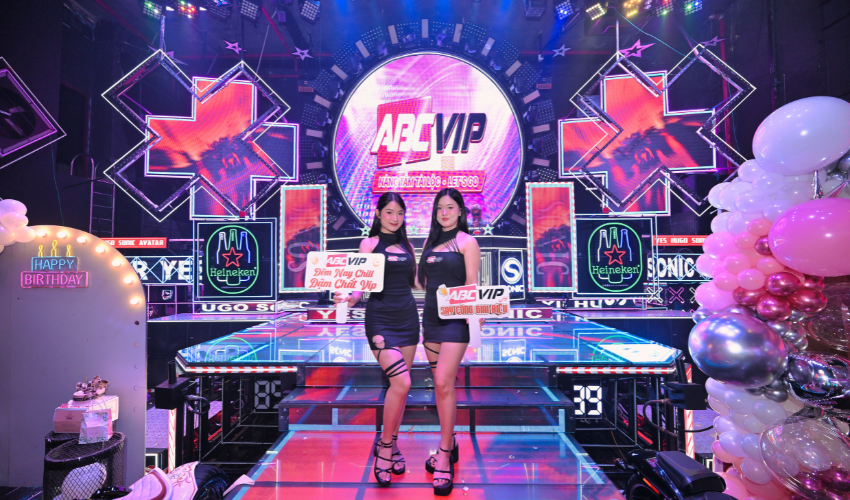 Dưới ánh sáng rực rỡ, logo ABCVIP hiện lên nổi bật như một dấu ấn dẫn đường cho những cuộc vui đỉnh cao, nơi bạn không chỉ đến để chill mà còn tận hưởng sự khác biệt mang tên VIP.